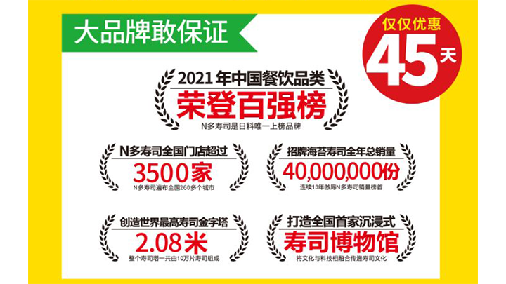 每天超过150000位N多寿司顾客信赖之选