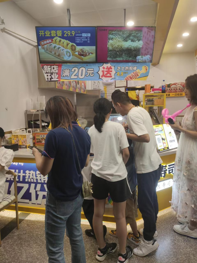 梅林镇一店铺子确定后我们就请公司启动了寿司加盟项目,设计,装修,开业筹备,N多寿司店开店都是公司一条龙服务。我们对公司的服务也很满意。9月我们又看好了一个店铺,启动了第二家店的经营。这一次,正好适逢十一小长假,公司层面派出了团队对我的尊龙凯时ag旗舰厅小店进行了帮扶,开业第一天做出了8000+的营业额。目前,寿司店营业额平常日也是稳定在2000+以上!