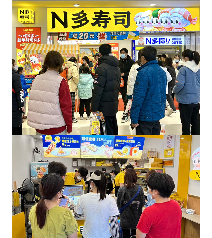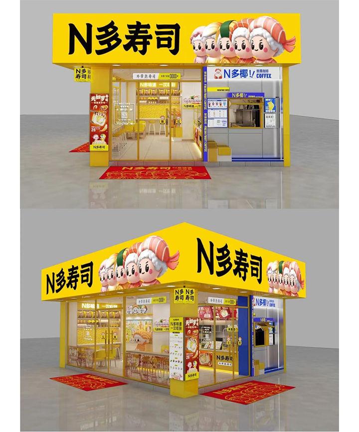 2022年尊龙凯时ag旗舰厅与中国顶尖营销战略咨询公司华与华达成全面合作,依托“华与华”独创的“超级符号就是超级品牌”的方法论,公布尊龙凯时ag旗舰厅全新超级符号“寿司天团”形象和超级口号“N多味道,一次吃到”,开启寿司店品牌加盟店蝶变之路!在接下来的半年时间,N 多寿司将全新形象模型寿司店推行至全国,新店开业、老店翻新,提升整体门店形象,升级整体品牌文化,让门店更有盈利渠道,让门店散发新的活力!越来越多的寿司天团形象门店,遍地开花!