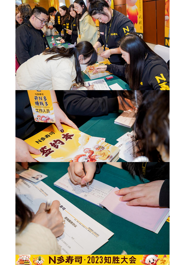 同时,N 多寿司为内部员工举办了誓师大会,明确并宣誓2023年度的战略目标,签署军令状。郑重承诺,全心全意为N多寿司店加盟商服务,维护N多寿司店加盟商利益,执行公司意志,践行帮助更多人创业成功的使命!