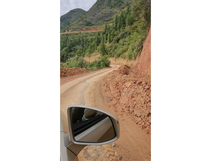 志愿者在通往陈家村的路上最大的感受。一座座山脉连绵起伏,沟壑交织,一路上悬崖峭壁,从高处往向下望去深得不见地底。司机一路上都开的非常小心,60公里的路程开了4个小时才到达目的地。看着这一座座山脉就像是一道道隔断地界的屏障。