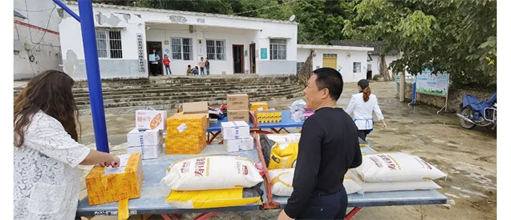 、牛肉等,用来保证孩子们的饮食。每一个领到物品的孩子都会认真的向志愿者们说声,谢谢。