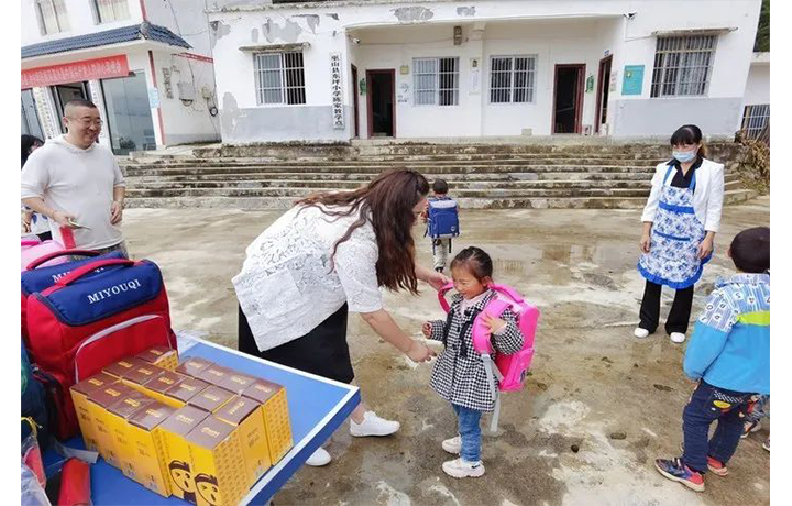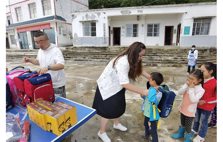 志愿者就开始发放物资。孩子们都很认真的排起了队。尊龙凯时ag旗舰厅不仅为每个孩子准备了新书包和日常用品,还给孩子们带来美味的零食,芝麻夹心海苔片、糙米汁等,为学校送上N多